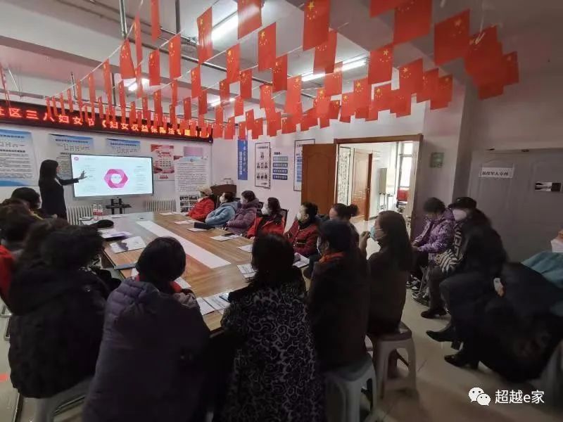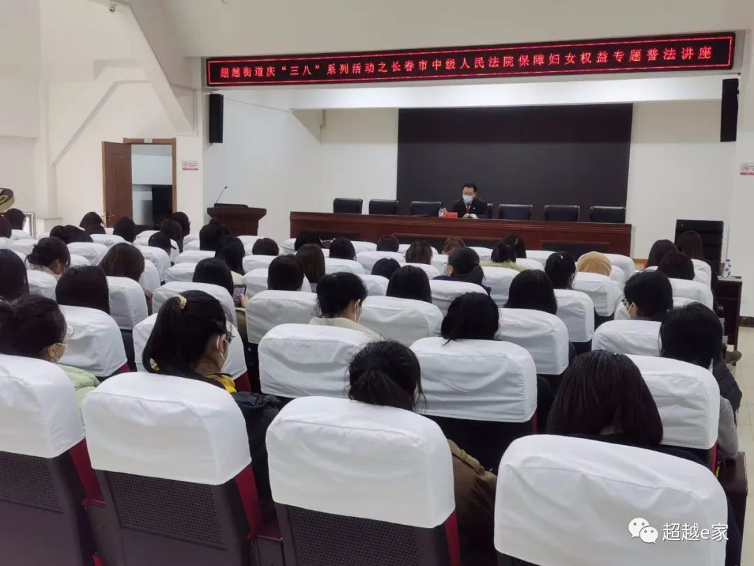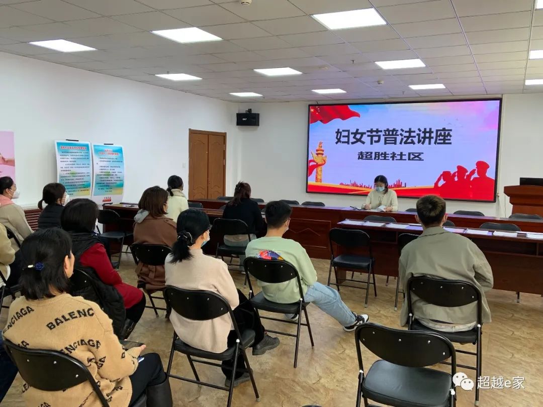 超越社区联合吉林钟言宇德律师事务所党支部开展三八妇女节·妇女权益保障法专题讲座,强化居民共同关注女性发展、促进男女平等、保障妇女权益的意识,提高对妇女工作重要性的认知,营造了浓郁的节日气氛。