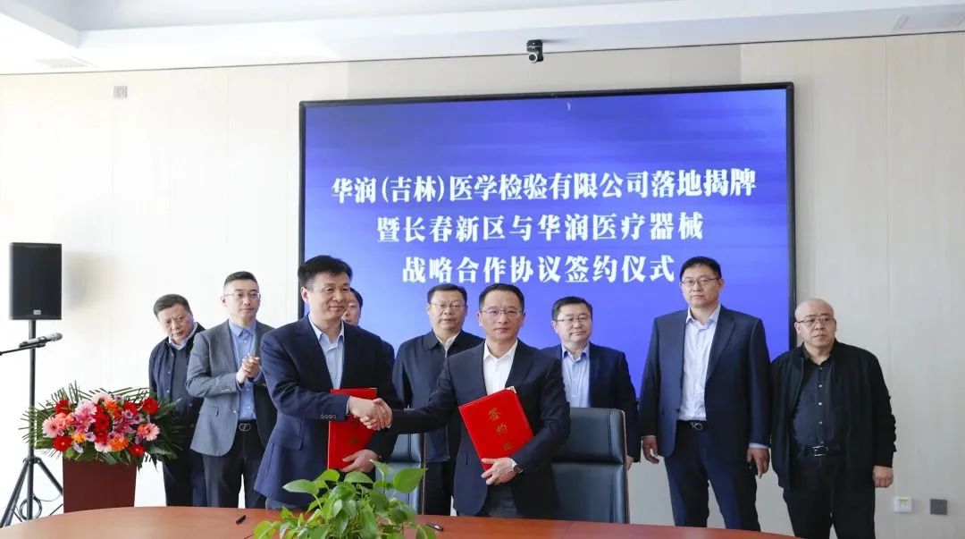 3月15日,华润(吉林)医学检验有限公司落地揭牌暨完美365体育ios下载_bt365体育备用网址_外勤365在线登录新区与华润医疗器械战略合作签约仪式在完美365体育ios下载_bt365体育备用网址_外勤365在线登录高新区越达科技产业园举行。完美365体育ios下载_bt365体育备用网址_外勤365在线登录新区管委会主任华景斌与华润医商集团医疗器械公司总经理唐彦林共同为华润(吉林)医学检验有限公司揭牌,双方共同签署《完美365体育ios下载_bt365体育备用网址_外勤365在线登录新区与华润医商集团医疗器械公司战略合作协议》,并就进一步深化合作展开座谈。